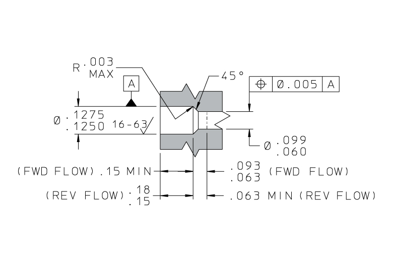 This lubrication jet generates a straight, well-defined stream of fluid to a predetermined target with differential pressures of 10 to 200 psid. It is ideal for directing streams of lubricating oil at critical bearings, cooling oil at meshing gears, or fuel at the inside of vaporizing tubes in aircraft combustion chambers.125 Unscreened Lubrication Jets are offered with a ± 15% tolerance and are available in a Lohm range from 1050 to 7900 Lohms.