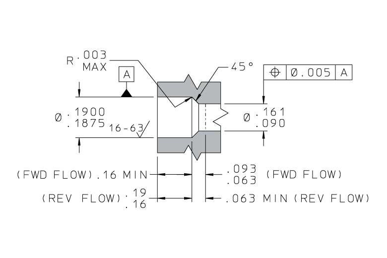 This lubrication jet generates a straight, well-defined stream of fluid to a predetermined target with differential pressures of 10 to 200 psid. It is ideal for directing streams of lubricating oil at critical bearings, cooling oil at meshing gears, or fuel at the inside of vaporizing tubes in aircraft combustion chambers. 187 Unscreened Lubrication Jets are offered with a ± 15% tolerance and are available in a Lohm range from 450 to 7900 Lohms.