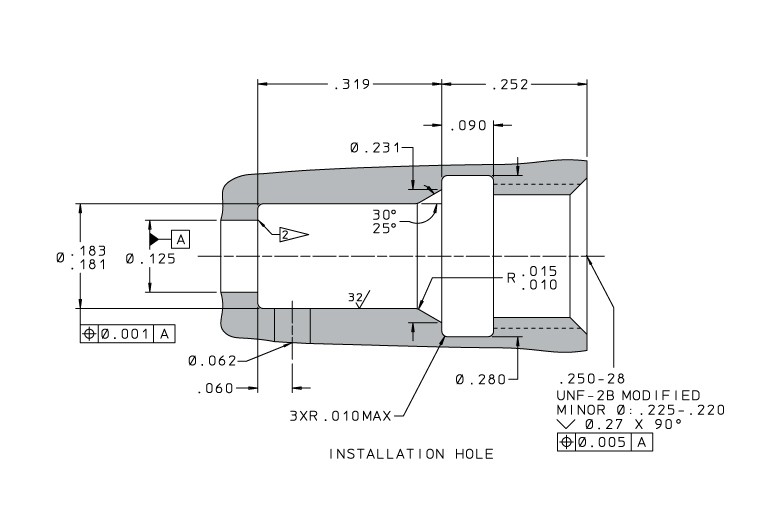 | Coining Tool Part Number | Required Tool Rotation | (Ref) Coining Torque (Aluminum Housing) | Installation Torque (Aluminum Housing) | (Ref) Coining Torque (Steel/AISI 8630 Housing) | Installation Torque (Steel/AISI 8630 Housing) |