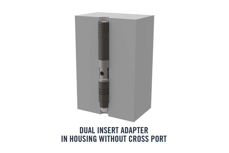 This Dual Insert Adapter makes using two Lee inserts of the same diameter, in the same hole easy and reliable. Whether it is the same part, such as two check valves in series providing redundancy against leakage or two different product types, such as a restrictor and check valve providing unidirectional metered flow, Dual Insert Adapters provide a seamless integration.