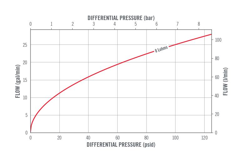 The Lee Company has developed the Lohm Laws for defining and measuring resistance to fluid flow. The Lohm is defined such that 1 Lohm will flow 100 GPM of water with a pressure drop of 25 psi at a temperature of 80°F.